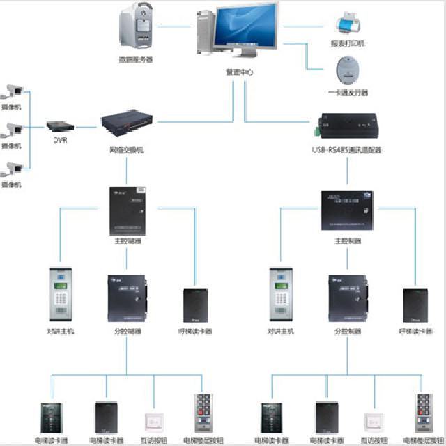 電梯門禁控制系統,是在不改變電梯操作面板的硬件基礎上,通過對電梯門禁輸出的繼電器干結點來控制電梯樓層按鈕的開 通和關斷。系統對于乘梯人員進行發卡授權,憑卡刷卡操作到達指定樓層。來訪人員通過呼叫系統,受訪人確認后給予電梯權限信 號,自動到達要訪問的樓層。來訪人也可以通過總臺登記,領取臨時卡就可使用電梯。業主通過刷卡和按互訪按鈕,能到達任意樓 層,與其他業主進行互訪。